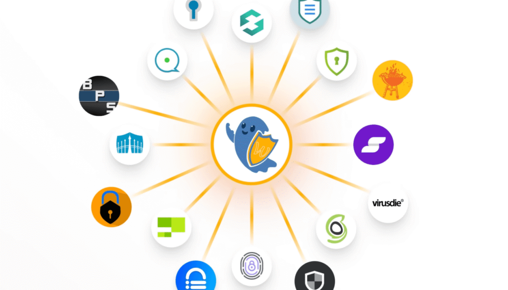 No, and that’s a good thing. WP Ghost is built to work together with your hosting security and other popular WordPress security plugins (Wordfence, Solid Security, etc.)