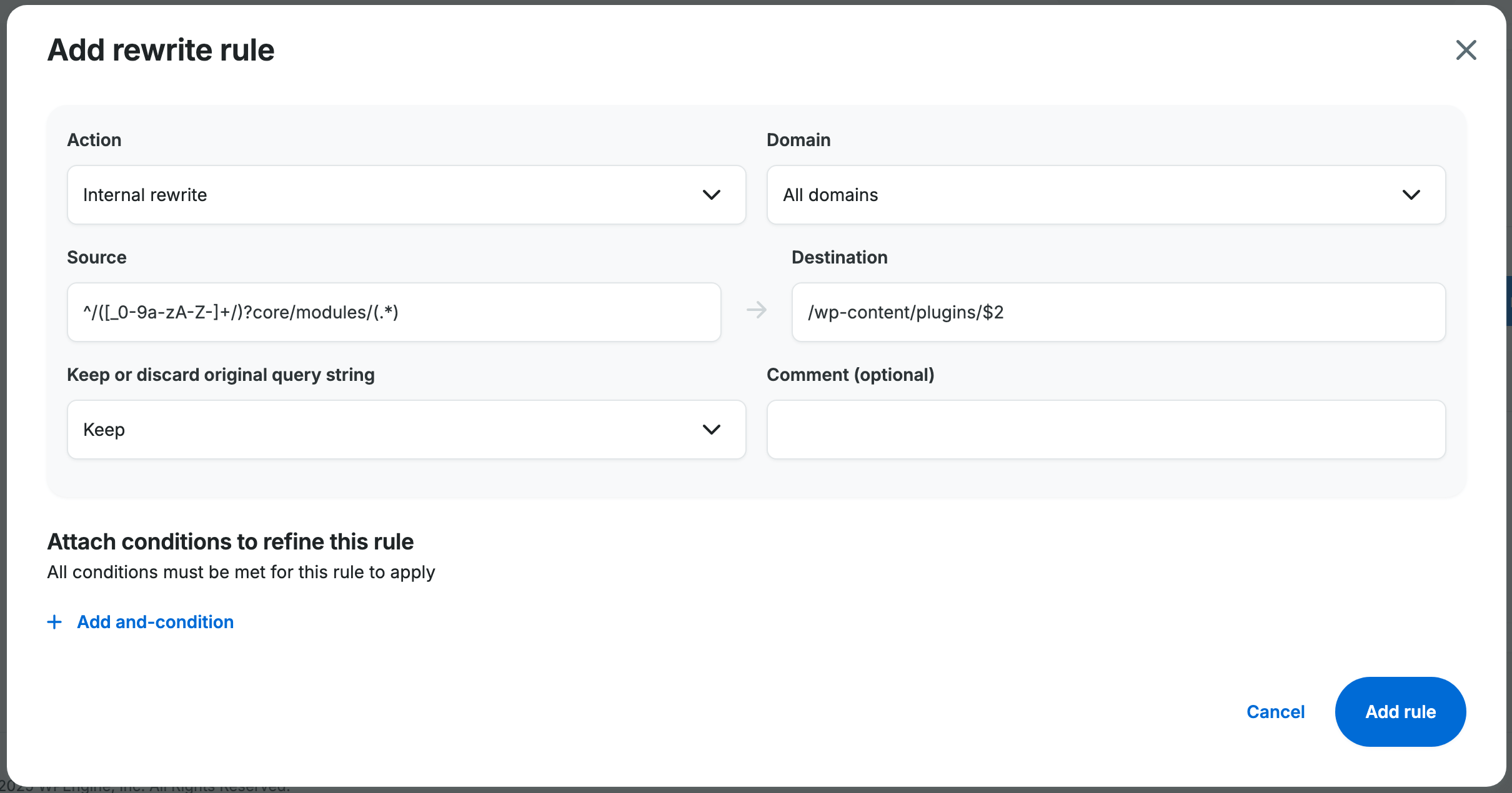 Click on the Rewrite Rules tab and then the Add Rule button to add the rules from WP Ghost to WP Engine.